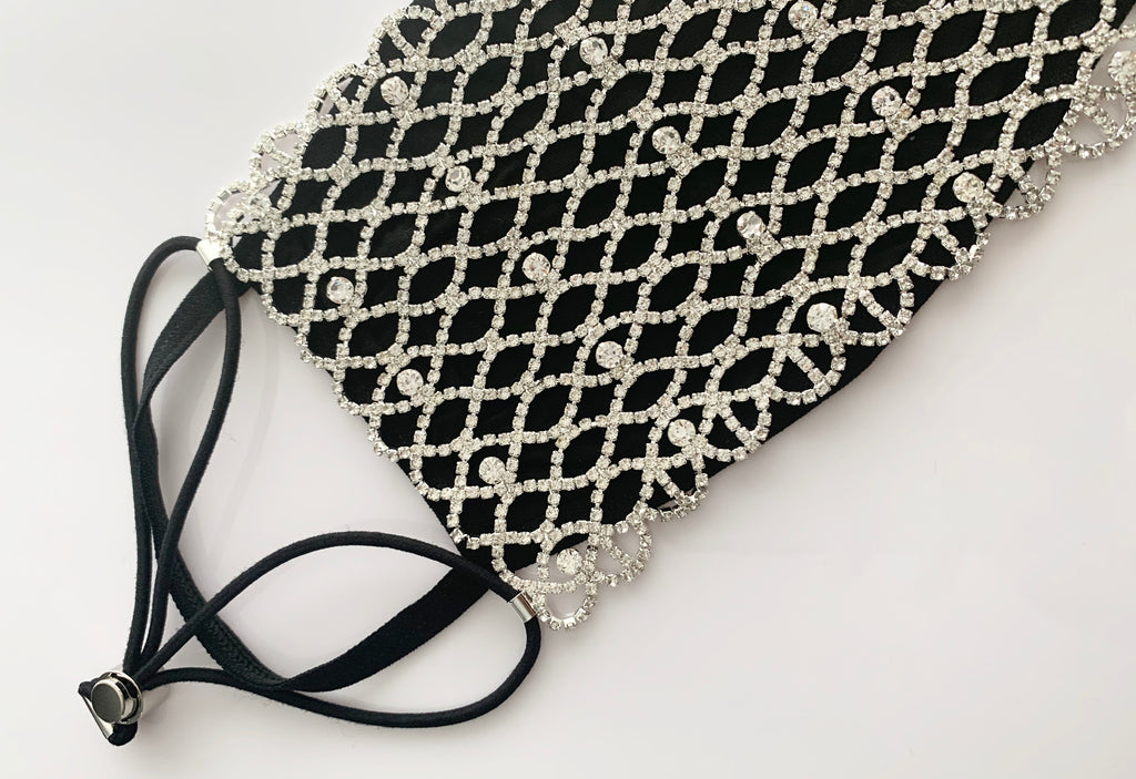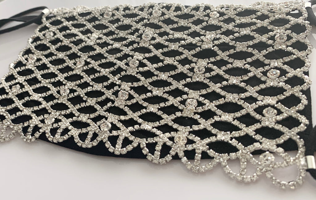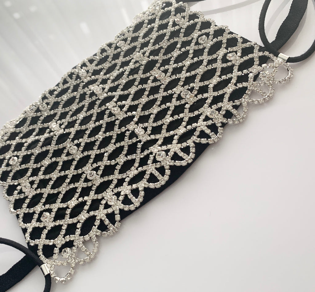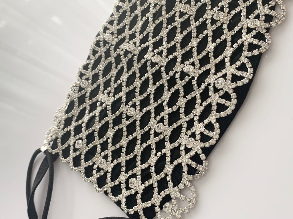 Luxury Black Rhinestone Face Mask Cover (OPTIONAL cotton mask)