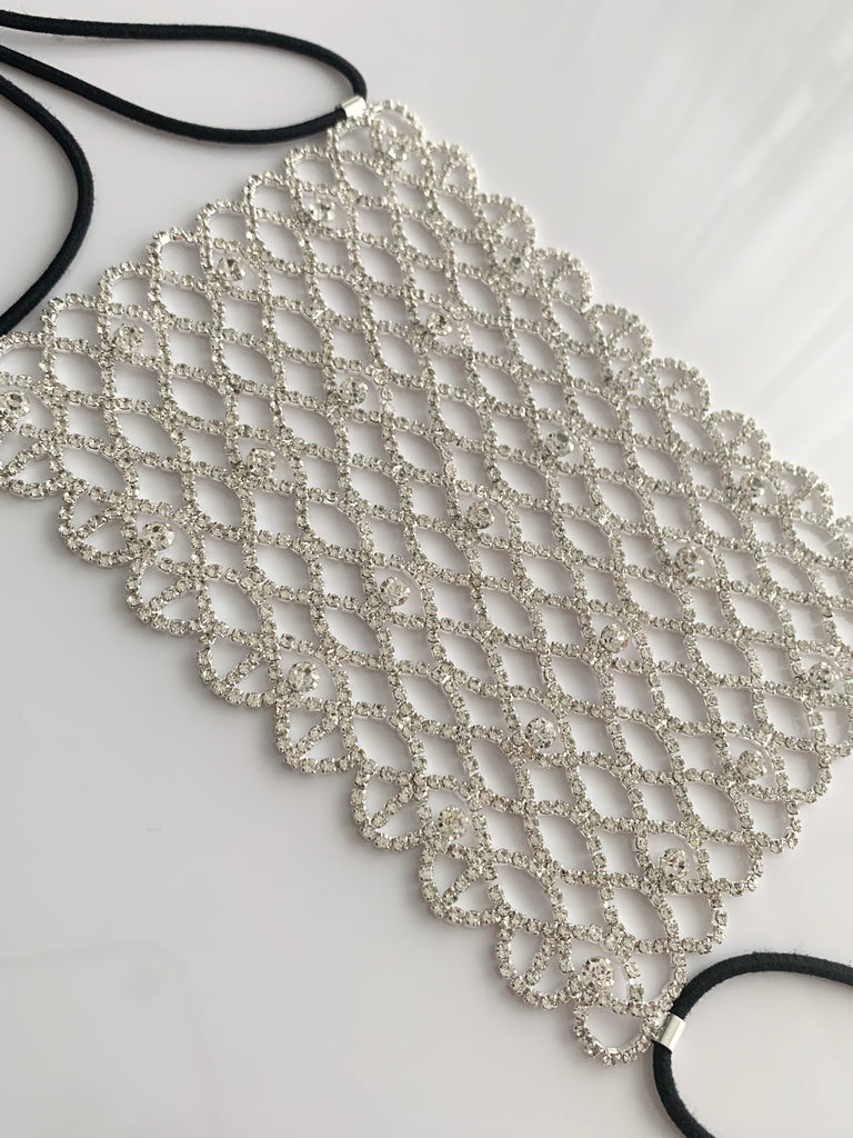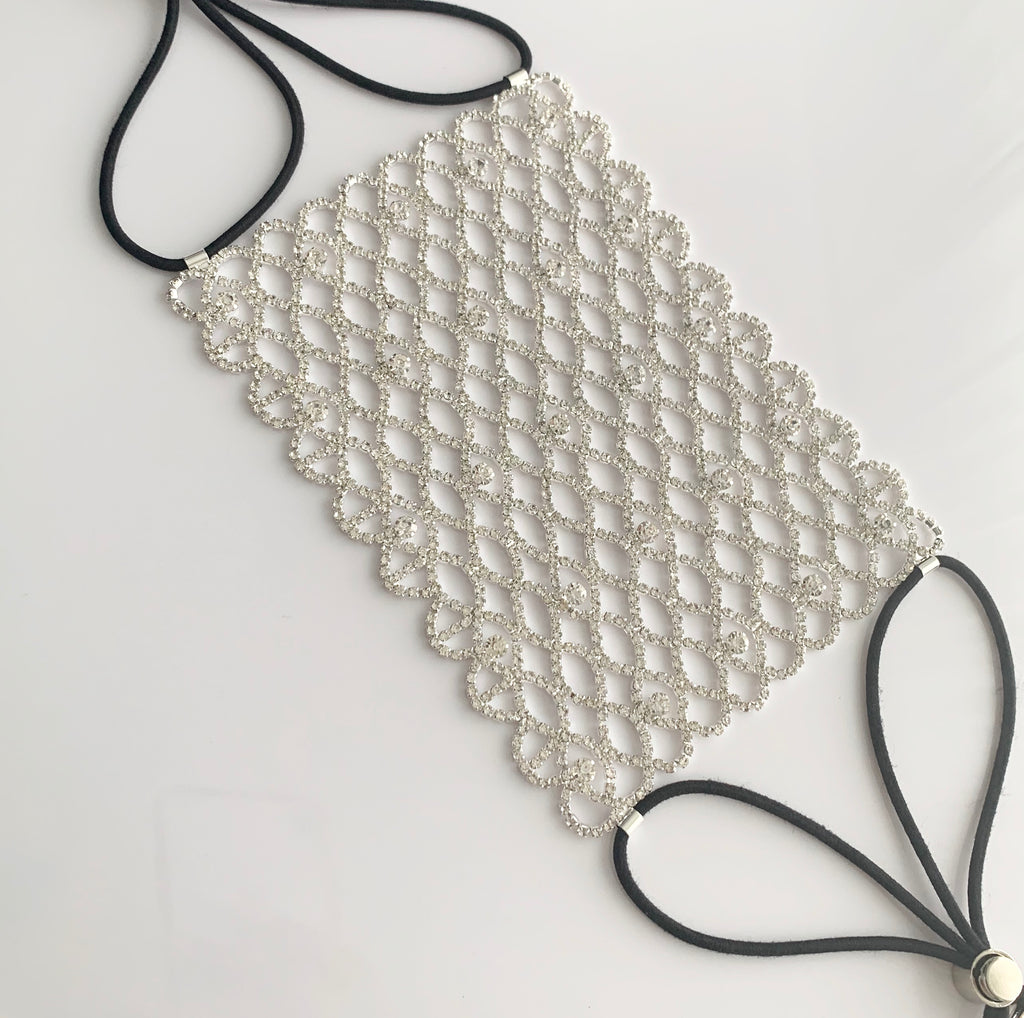 High quality fashionable silver rhinestone face mask cover.